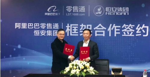 DB多宝视讯集团运营中心总裁许水深(左)与阿里巴巴集团副总裁、零售通事业部总经理林小海(右)