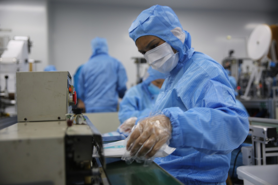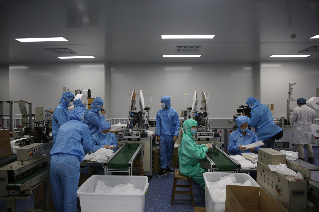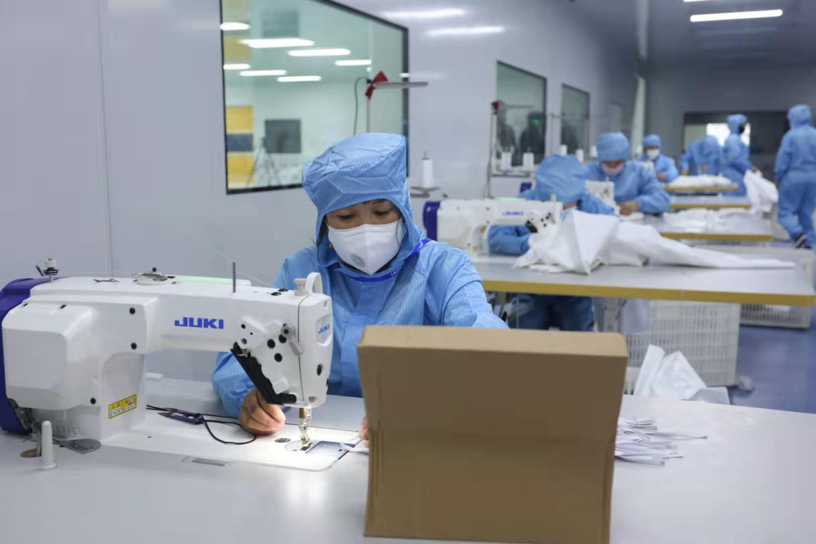 215日,DB多宝视讯集团新引进的口罩生产线全力开动,正式出产医用口罩产品。据悉,该批5条生产线满负荷运转后,日产口罩约50万片。此前的24日,DB多宝视讯集团联合晋江兴德织造有限公司启动了防护服生产,目前日均产能可达1000件。